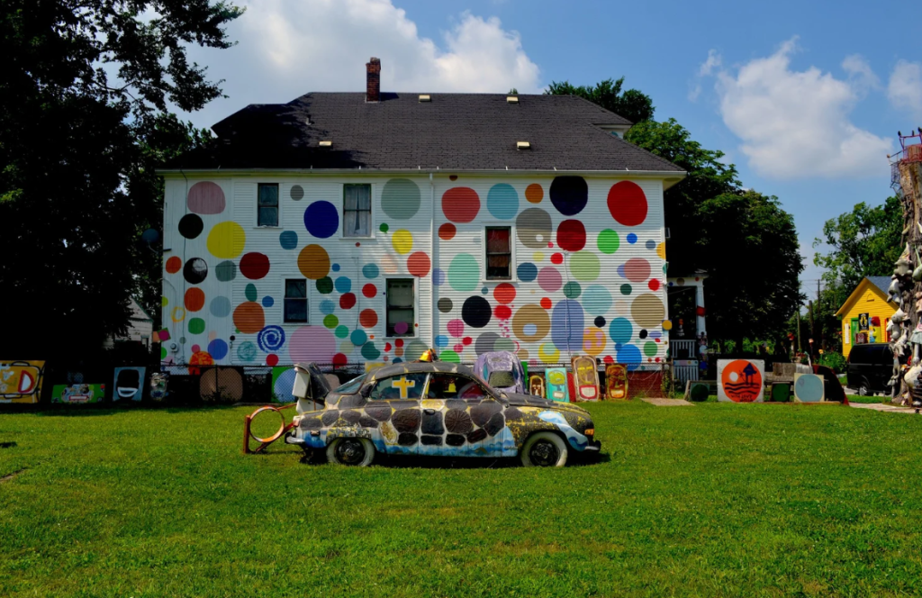 The Heidelberg Project is an outdoor art project and neighborhood transformation in the McDougall-Hunt neighborhood on Detroit’s east side, just north of the city’s historically African-American Black Bottom area. It was created in 1986 by the artist Tyree Guyton and remains a major attraction for tourists and locals alike.